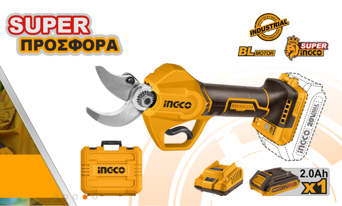 Ψαλίδι Κλαδέματος Μπαταρίας 20V Li-Ion Ingco CSSLI203083