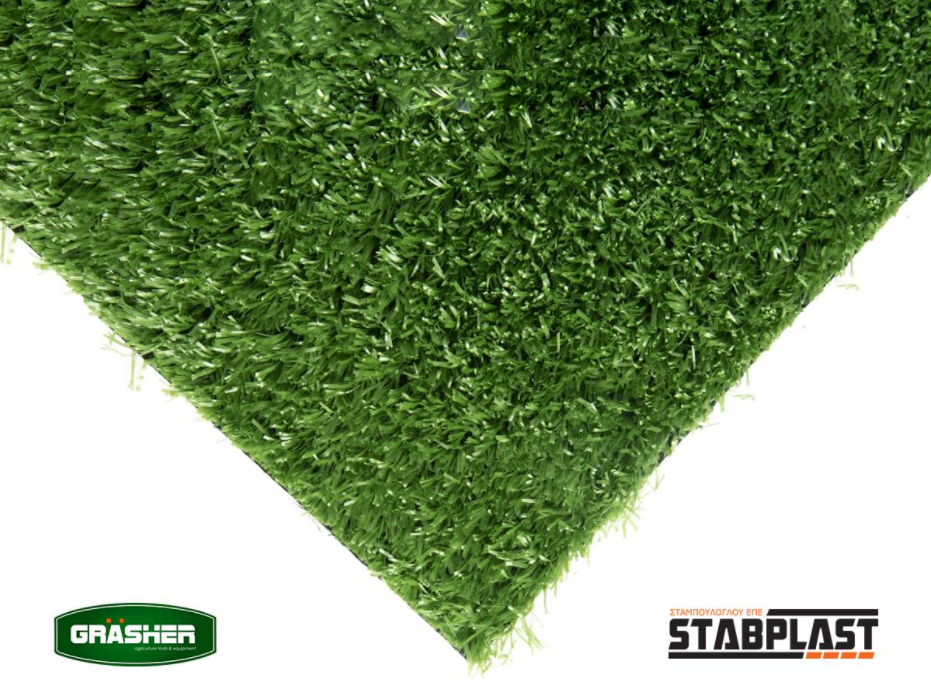Διάσταση: 1x2m Ύψος πέλους 12mm Mε υπόστρωμα Latex και πολυπροπυλένιο. πυκνής πλέξης και αντιολισθητικός. ιδανικός για διαμόρφωση κήπου και εξωτερικών χώρων ειδικά κατασκευασμένος ώστε να μοιάζει με φυσικό γκαζόν Διαθέτει UV προστασία εως 5 χρόνια. Δεν έχει κανένα απολύτως πρόβλημα στον ήλιο και τη βροχή. Μπορεί να μένει μόνιμα εκτεθειμένο στον ήλιο, επί πολλούς μήνες, χωρίς να επηρεάζεται καθόλου το χρώμα του. Ο πλαστικός χλοοτάπητας, επίσης, δεν επηρεάζεται από τη βροχή, όσο συχνά και αν βρέχει ή και για οποιαδήποτε έντασης βροχή.