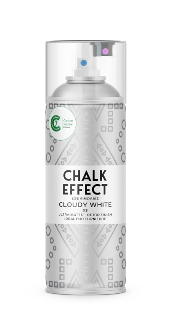 Το Νο 1 ματ σπρέι ουδέτερου αποτυπώματος άνθρακα παγκοσμίως. Ανανεώστε τα παλιά επιπλά σας και διακοσμητικά αντικείμενα δίνοντάς τους έναν εντυπωσιακό ματ φινίρισμα κιμωλίας με τον πιο εύκολο και δημιουργικό τρόπο. Ιδανικό για έπιπλα και διακοσμητικά αντικείμενα. Έχει πρόσφυση σε ξύλο, μελαμίνη, καμβά, μέταλλο, γυαλί και χαρτόνι. Κατάλληλο για DIY εφαρμογές αλλά και για επαγγελματίες. Περιλαμβάνει δύο (2) μπεκ ψεκασμού για μικρές και μεγαλύτερες επιφάνειες. Δεν στάζει, ενώ ο ειδικός ψεκασμός του Cosmos Chalk Effect ελαχιστοποιεί το χρόνο βαφής. Δώστε νέα ζωή στα παλία σας έπιπλα, σε 15 λεπτά, χωρίς εργαλέια και ειδικές γνώσεις!