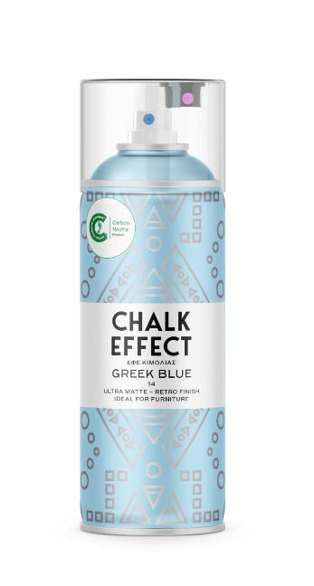 Το Νο 1 ματ σπρέι ουδέτερου αποτυπώματος άνθρακα παγκοσμίως. Ανανεώστε τα παλιά επιπλά σας και διακοσμητικά αντικείμενα δίνοντάς τους έναν εντυπωσιακό ματ φινίρισμα κιμωλίας με τον πιο εύκολο και δημιουργικό τρόπο. Ιδανικό για έπιπλα και διακοσμητικά αντικείμενα. Έχει πρόσφυση σε ξύλο, μελαμίνη, καμβά, μέταλλο, γυαλί και χαρτόνι. Κατάλληλο για DIY εφαρμογές αλλά και για επαγγελματίες. Περιλαμβάνει δύο (2) μπεκ ψεκασμού για μικρές και μεγαλύτερες επιφάνειες. Δεν στάζει, ενώ ο ειδικός ψεκασμός του Cosmos Chalk Effect ελαχιστοποιεί το χρόνο βαφής. Δώστε νέα ζωή στα παλία σας έπιπλα, σε 15 λεπτά, χωρίς εργαλέια και ειδικές γνώσεις!